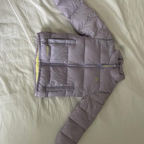Mycket fin dunjacka för vintern. Storlek 152. Färgen är lite missvisande på bilderna, jackan är mer i en matt behaglig röd. Härligt stor luva.