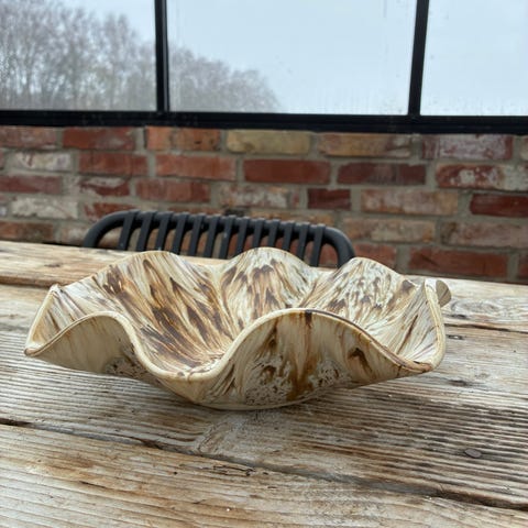 Ellos dekorationsföremål i svart färg med vågiga kanter och texturerad yta. Passar som prydnad i olika rum och miljöer.