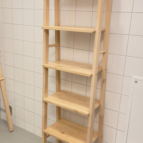 Stabil och robust hylla i trä med svarta stag. Tre öppna hyllplan för förvaring och/eller display. Passar för användning i vardagsrum, sovrum eller andra utrymmen där förvaring behövs.