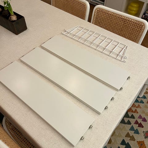 Säljer en vit String Pocket bestående av två gavlar och tre hyllplan.