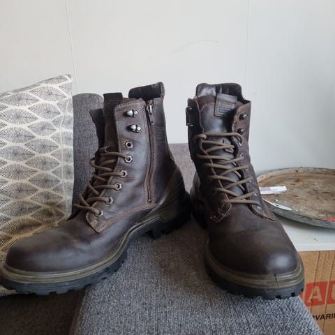 Bruna chelsea boots i mocka från Ecco. Resårpaneler på skaftets båda sidor. Två vävda dragöglor. Foder och löstagbar innersula i textil. Grövre yttersula i gummi med en klackhöjd på cirka 4.5 cm.