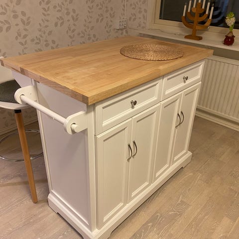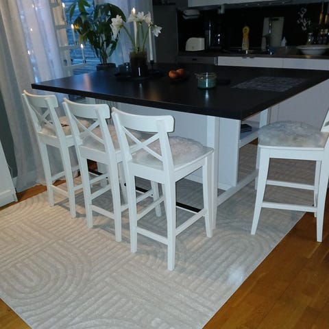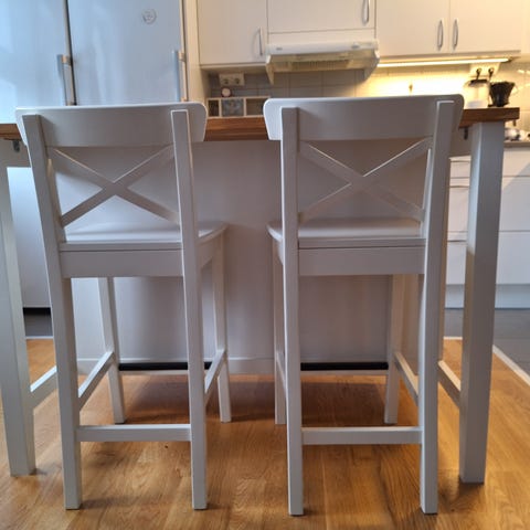 Köksö från IKEA med EU-toppar och två st barstolar.