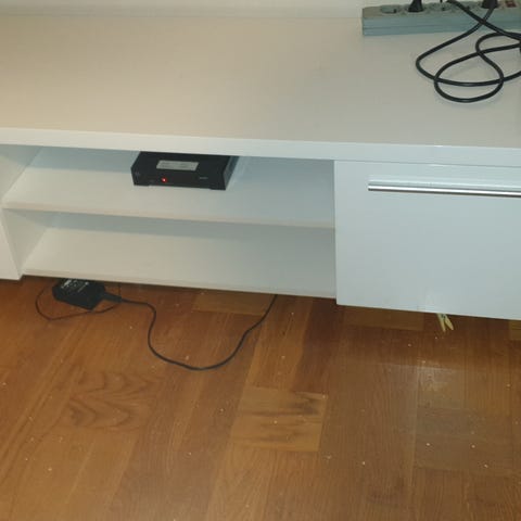 Fin tv bänk med hyllor. Hämtas av köparen senast 13/1