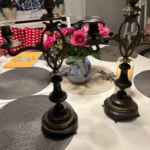 Ett par äldre orginalpar ljusstakar i massiv mässing