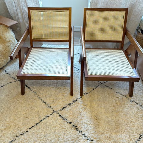 Två fina rottingfåtöljer säljes. Dynor inköpta 2024 från Kila Möbler ingår.