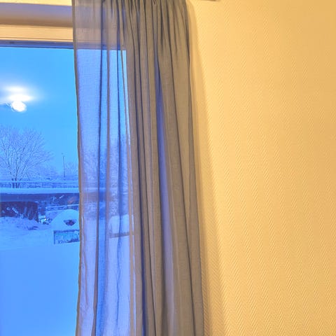 Gardinerna HILJA i vitt med finvävd struktur släpper in ljus, men dämpar starkt solsken. Det lätta och blekningsbeständiga tyget faller mjukt och multibandet möjliggör olika upphängningsalternativ.