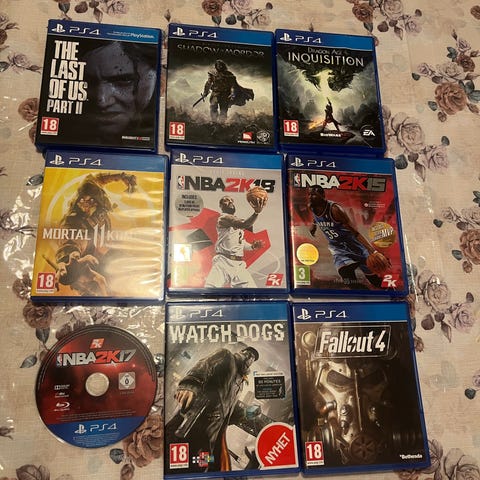 Säljer ett paket med 9 stycken PlayStation 4-spel.