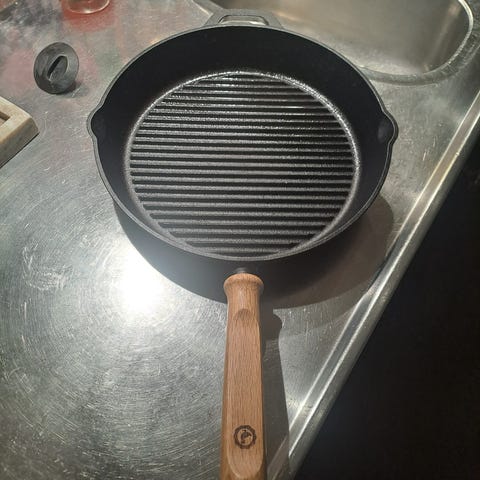 Stekpannan är ny. Jag testade den en gång och lade sedan i skåpet utan att använda den igen. Nu är det dags att sälja den, så att den kan hitta någon som verkligen får nytta av den.