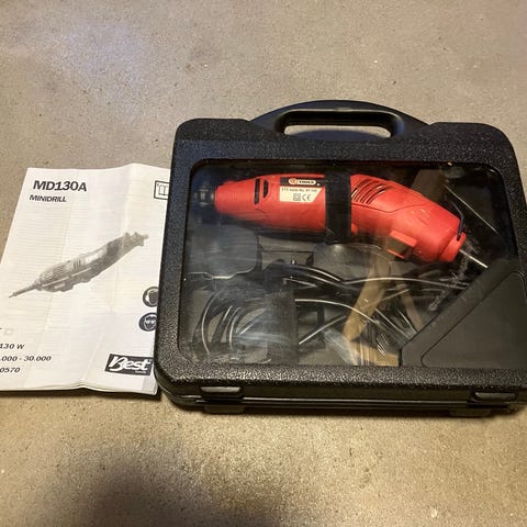 Flex vinkelslip, använd en gång för att spåra i betong, sen legat i sin låda. 125mm klinga. Modell enl bild.