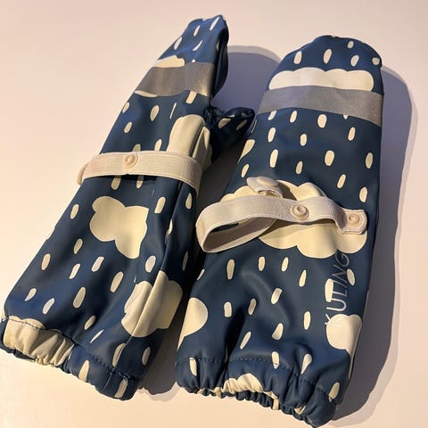 Fodrade galonvantar från Kappahl som skyddar små händer från både kyla och väta. Vantarna har svetsade sömmar och är helt vattentäta. Mjukt fleecefoder på insidan. Resårband med tryckknapp runt handleden och infälld resår i öppningen så att vantarna sitter på plats.