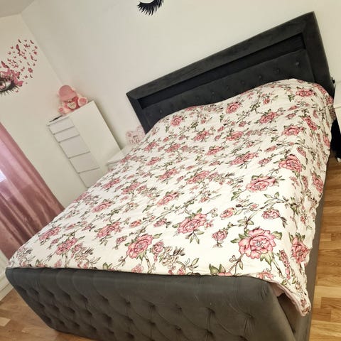 Säljer min Franco Lyx kontinentalsäng i grå sammetsklädsel, köpt 2019. Nypris idag: 21 999 kr.