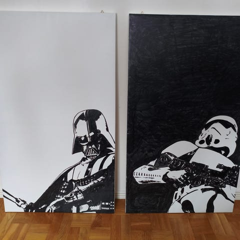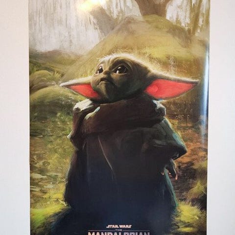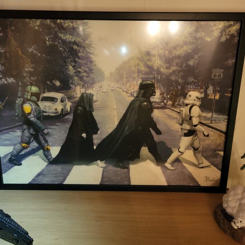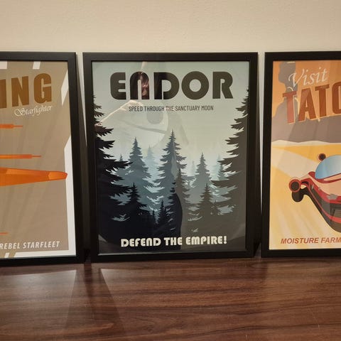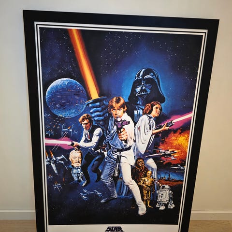 En stor inramad poster föreställande R2-D2 i Star Wars. Har hängt i sonens rum i djur- och rökfritt hem, men har nu fått lämna plats åt annat.