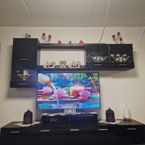 Stilren och praktisk TV-möbel med vägghyllor i fint skick. Använd men välskött، inga synliga skador. Passar perfekt för vardagsrummet och ger gott om förvaring.