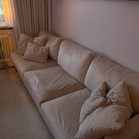 I got this soffa almost a year ago. Its completely new and it very comfortable and cozy but sadly I have to sell it because I’m moving.