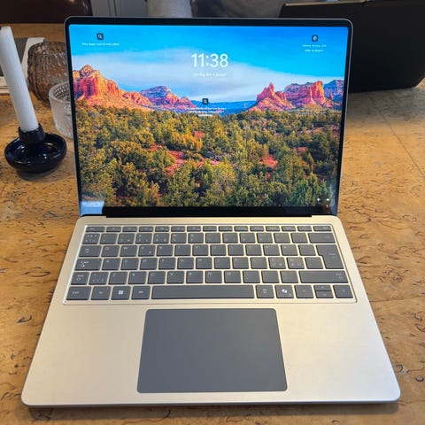 Microsoft Surface Laptop 10 2024 modell med svart färg och tangentbord. En bärbar dator med pekskärm och kompakt design. Passar för allmänna datoranvändningar.