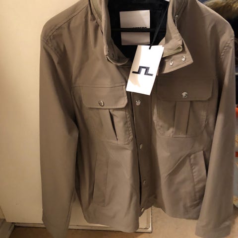 Ljusgrå jacka från Lindbergh White. Jackan har en dragkedja framtill, en bröstficka och två sidfickor. Ärmarna avslutas med knappar.