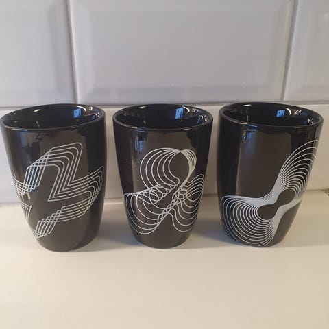 2 st kaffemuggar inköpta i New York under en tid när man gärna besökte staden. Den ena med ikoniska "I love NY"-loggan, den andra NY-polisens officiella merchandise-mugg för snutkaffe. Licensierade originalsouvenirer (se undersidan). Dekorerade på båda sidor. Mycket gott skick.