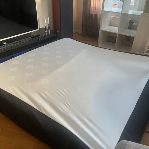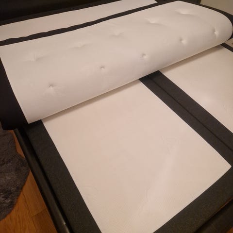 Säljer min kontinentalsäng från Trademax, inköpt 2021. Sängen har en vacker sänggavel med diamantmönster. Säljes inklusive madrasskydd och ett extra överdrag som jag använt för att byta färg så den passar inredningen. Extra sängben (silver) följer med. Ta med bärhjälp.