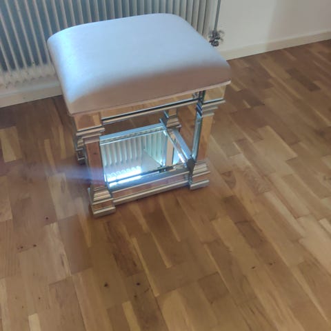 Säljer min fina Padborg-puff från JYSK. Det är den populära modellen i sammet (velour) i färgen Curry med matchande guldfärgade ben.