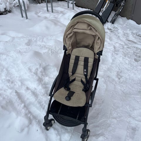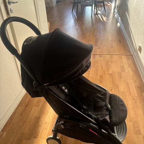 Spännet fram är lite trasigt, och vi har bytt en av knapparna för att fälla ihop vagnen. Vi skickar med den andra reservknappen för ev framtida byte, som bara går att köpa i USA. Klädseln är tvättad och vagnen kommer från djur- och rökfritt hem.