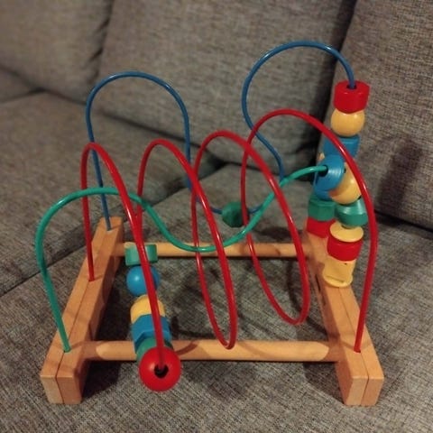 Glidbanan/blåsan i blått och grönt från märket Little Tikes är i gott skick, men det finns ett svart märke på den