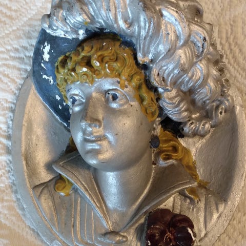 Köpt på aktion men passar inte hemma, blyinfattad glas, 1900- talets första hälft. vet ej om den lyser. Har ingen sådan kontakt. .Finns på väddö men kan tas till Uppsala.