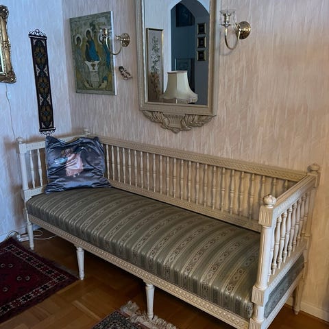 Soffa väldigt fint skick . Inga fläckar rökfritt och djurfritt .