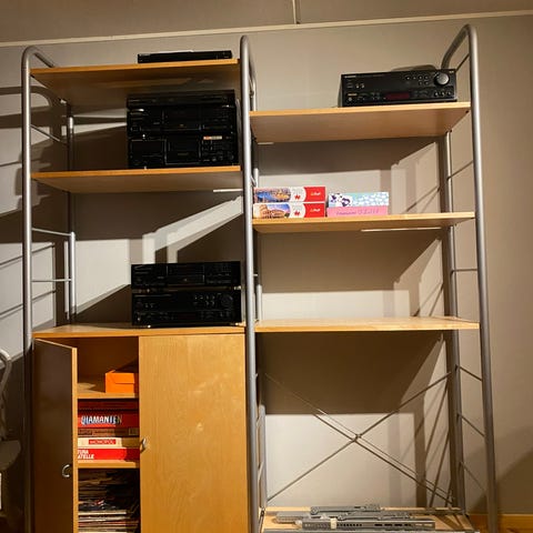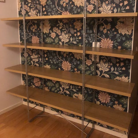 Fin bokhylla, tror det är IKEA Enetri med modifierade hyllor