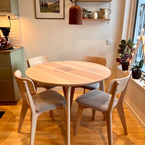 Runt köksbord med 4 stolar – IKEA LISABO (ask)