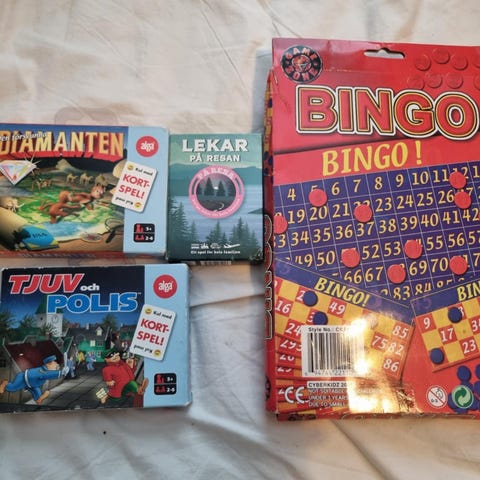 Bingospel inklusive metallkorg för nummerdragning, nummerbrickor med bokstäver och siffror, samt kulor för spel. Setet innehåller flera brickor och är avsett för bingospel.