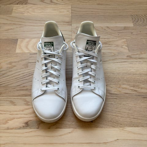 Converse sneakers i storlek 38. Skorna är vita med svart detalj på hälen och har snörning framtill. Tillverkade i lädermaterial.