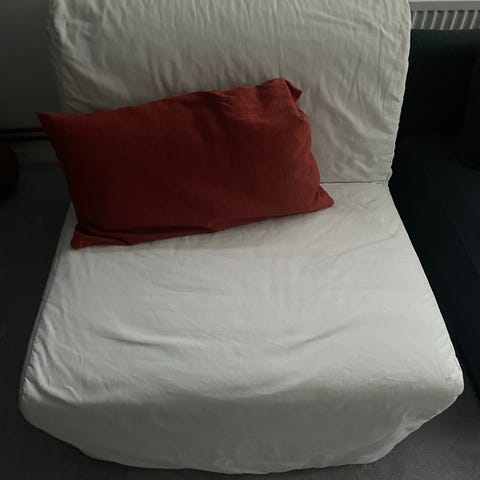 Använd som extra säng i sonens rum. Sittkudden används som madrass.