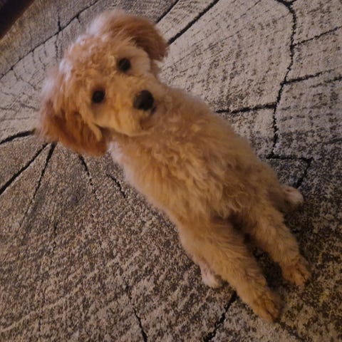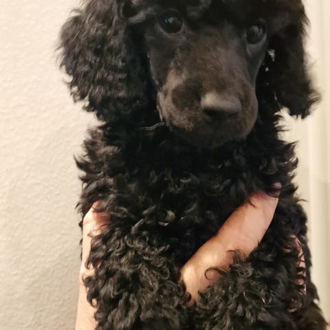 Buster är en glad, nyfiken och social valp som älskar närhet, lek och att vara med där det händer. Han är uppvuxen med barn och är en blandning av dvärgpudel, tax och spets.