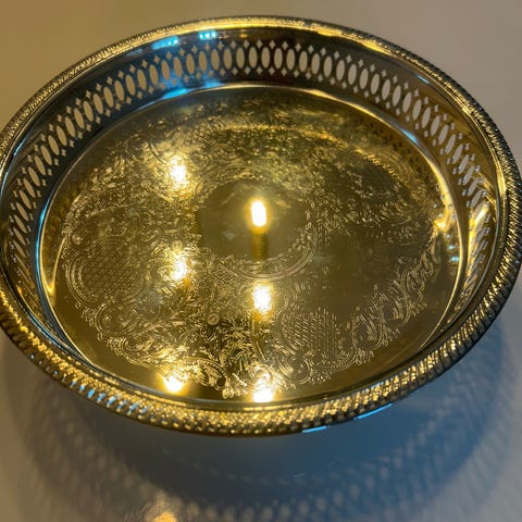 Antique Round Tray with Ornaments in NS.