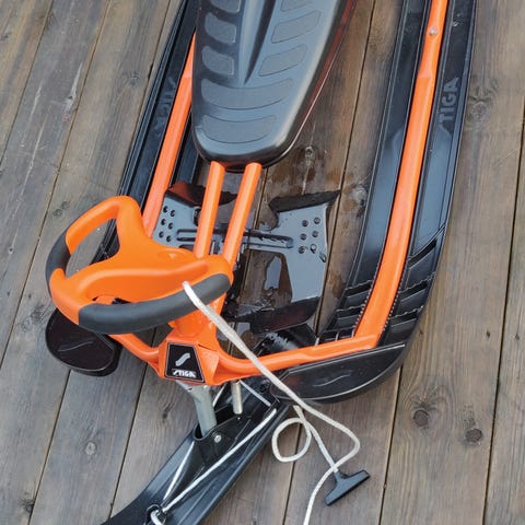 Stiga Snowracer i svart färg och ganska bra skick. Snowracern har rattstyrning och en sits för barn. Passar för användning i snö.