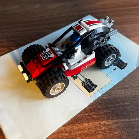 LEGO City Offroad-bil med tillhörande minifigurer och cykel. Setet innehåller en vit och orange offroad-bil med stora hjul, samt två minifigurer och en orange cykel. Passar barn från 6 år och uppåt.