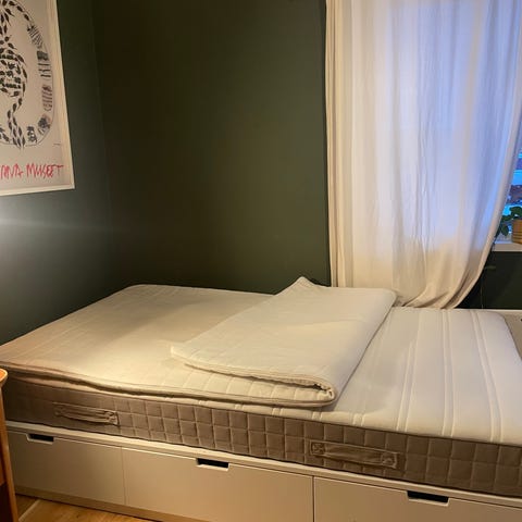 Hej! Jag säljer denna VEVELSTAD sängstomme och VESTERÖY madrass. Storleken är 120 cm. Jag köpte den i april förra året, och både stommen och madrassen är i perfekt skick. Tyvärr kan jag inte ordna leveransen, så jag behöver den potentiella köparen ordna upphämtning från Vega (Haninge). Jag förhandlar gärna om priset. Ställ gärna frågor! :)