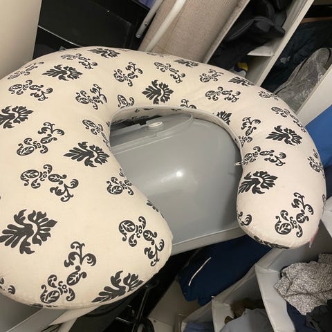 Fin amningskudde i rosa / rött med djurmotiv. Enstaka fläckar på kudden men annars väl omhändertagen. Kan också användas som gravidkudde!