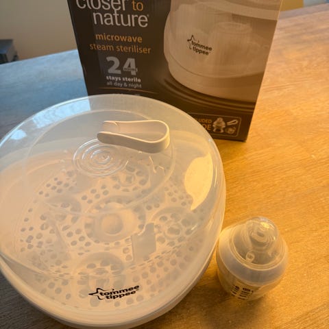 Bought new, used for 1 child during pumping times to sterilize the pumping parts and bottles. Super handy and in perfect condition.