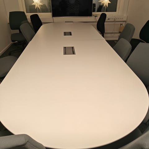 Kontorsstolar och konferensbord i grått och vitt