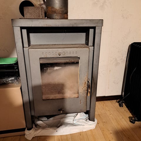 Harvia vedspis med två plattor. Köpt på Bauhaus.