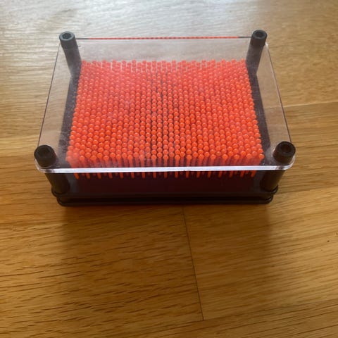 Bokstavstavla, barnhörlurar, dinosaurie, kudde i form av en muffin.