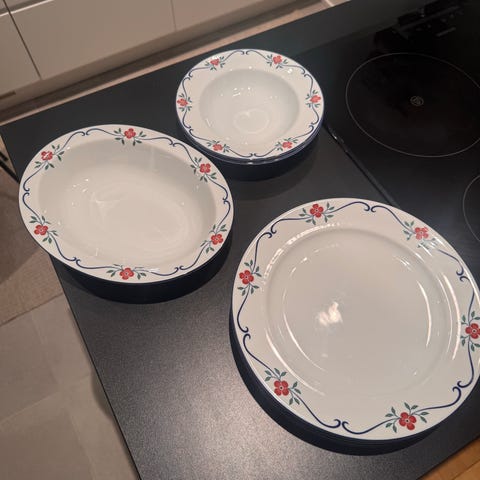Rörstrand tallrikar, 10 stycken, färg havre. Tallrikarna har en strukturerad kant och är tillverkade i porslin.