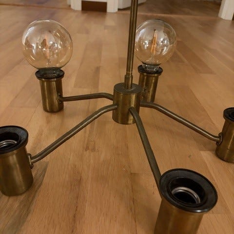 5-armad taklampa med ljuspunkter. Mässing. Vintage.