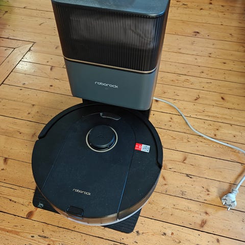 Stationen har behållare för rent vatten, smutsvatten och damm. Den tömmer och fyller på sig automatiskt.
