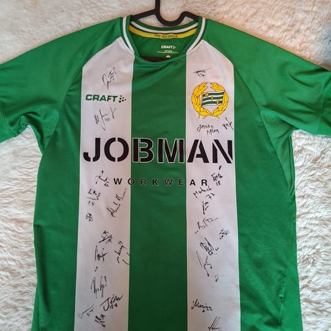 Craft IFK Göteborg fotbollströja med blå och vita vertikala ränder. Tröjan är signerad av alla spelare säsongen 2022/23 Material och storlek är inte specificerade.