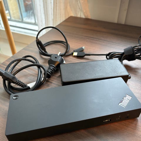 Säljer en sparsamt använd Lenovo ThinkPad Universal Thunderbolt 4 Dock (dockningsstation) i nyskick. Nypris 3 999 kr.