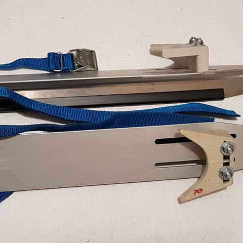 Ett fint par Skyllemarks Långfärdsskridskor. Sparsamt använda och enkelt att komma igång med tekniken då det är fast häl.
