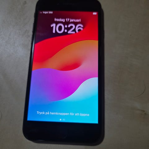 Apple iPhone SE (2-3 gen) mobiltelefon med 64 GB lagringskapacitet i svart färg. Enheten har en skärm med synliga sprickor och yttre slitage. Telefonen är utrustad med hemknapp och har en kompakt design.fram skärm och baksidan är sönder men inget som påverkar funktionen