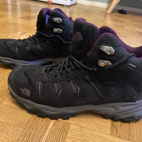 Salomon barnskor i storlek 36 för flicka. Skorna är i lila och rosa färger och har Gore-Tex material för vattentäthet.